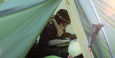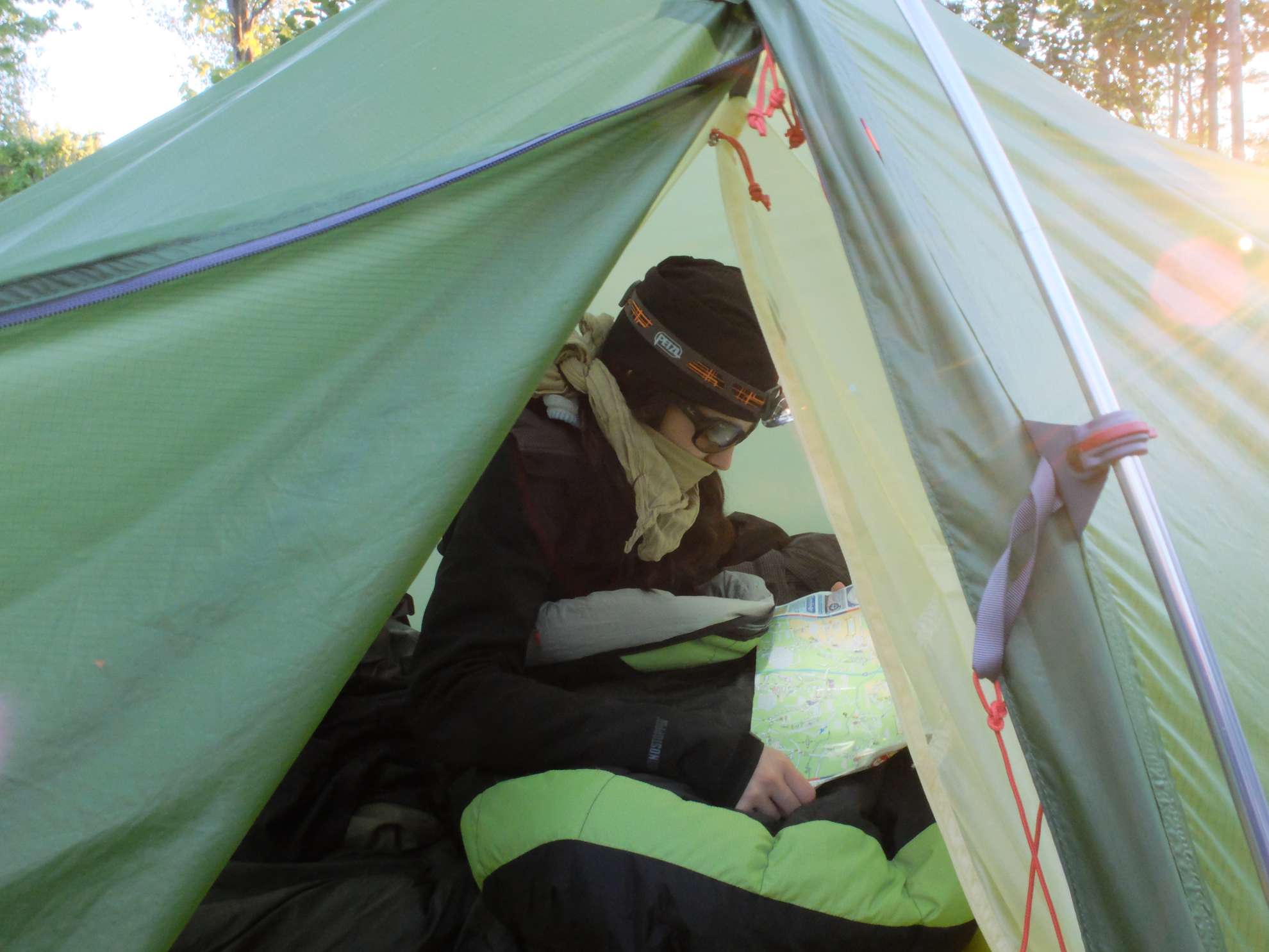 Ein Zeltlein steht im Walde, ganz still und stumm. Die Bewohner haben fünf Bekleidungsschichten vom Globetrotter um.