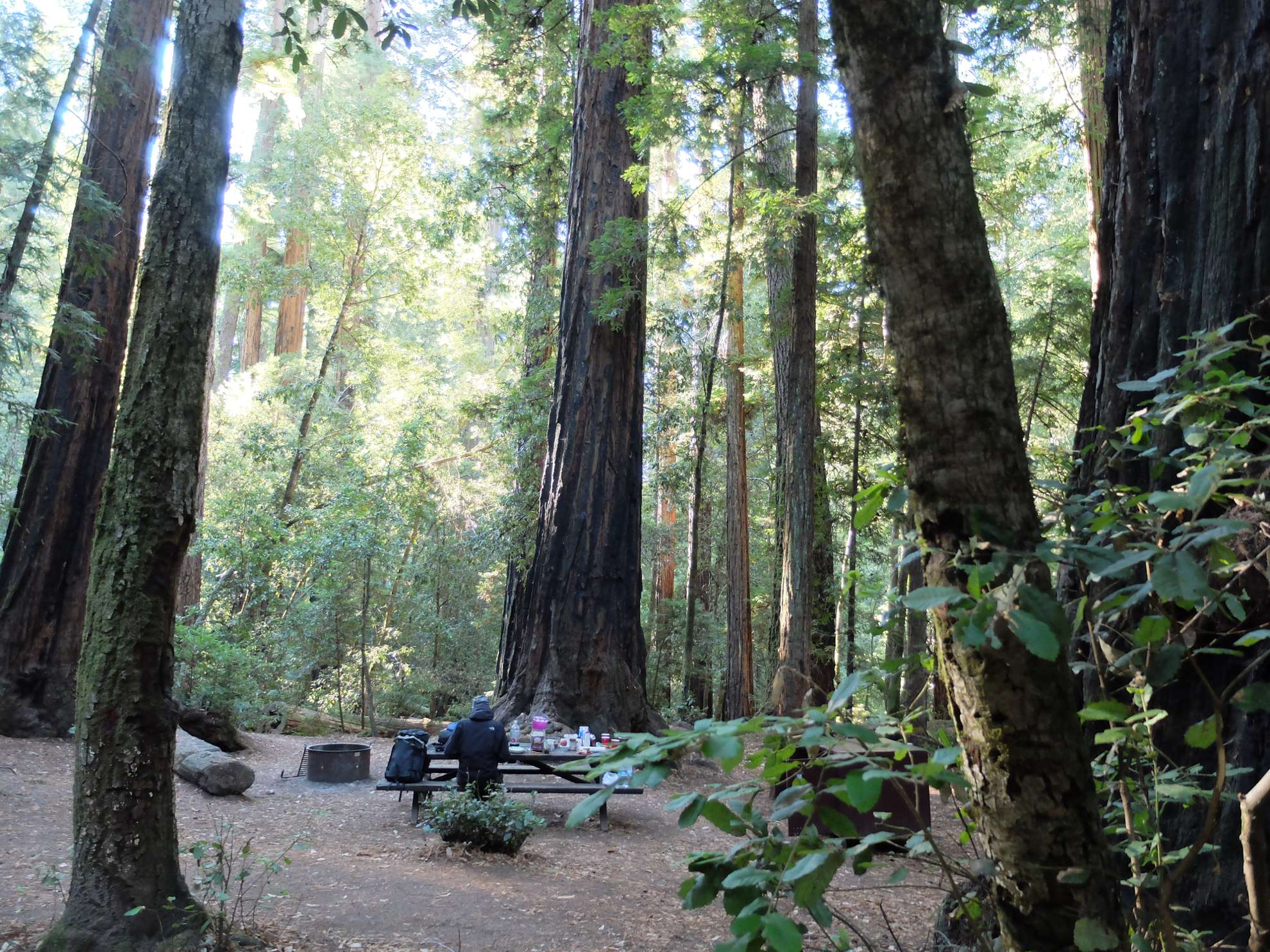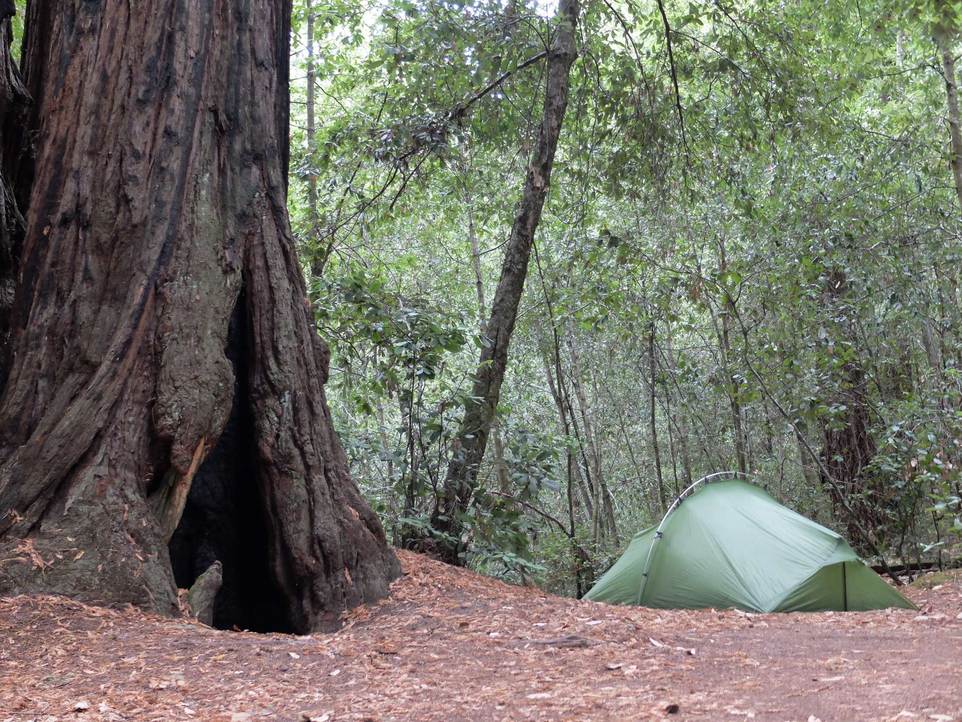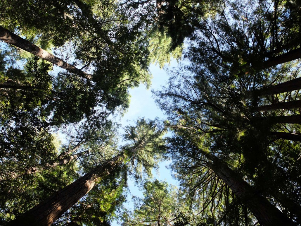 Auch der Big Basin Redwoods State Park in Kalifornien beherbergt, genau, Redwoods – große zimtfarbene „Küstenmammutbäume“, bis zu 2000 Jahre alt. Wenn sie brennen, glüht ihr Kern aus und sie leben über die Wurzel und die Rinde weiter. Kann man mal drüber nachdenken. Die wollten wir sehen und mit einer pathetischen Melodie auf den schmunzelnden Lippen umarmen (letzeres viel eher kurz aus, die Rinde beherbergt allerlei Insekten).