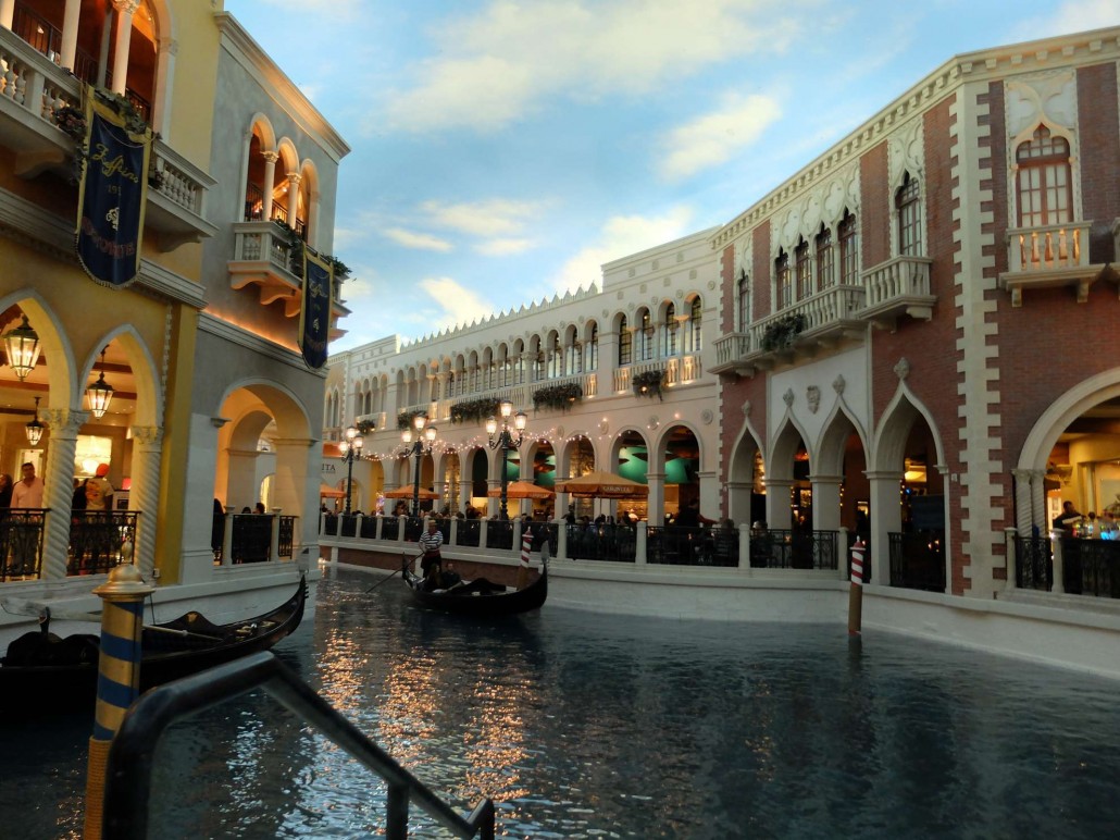 Im „The Venetian“ gibts den „Canal nicht ganz so grande“ unter aufgemalten blauen Himmel – sehenswert.