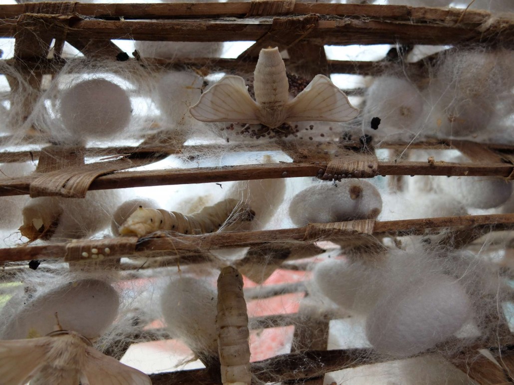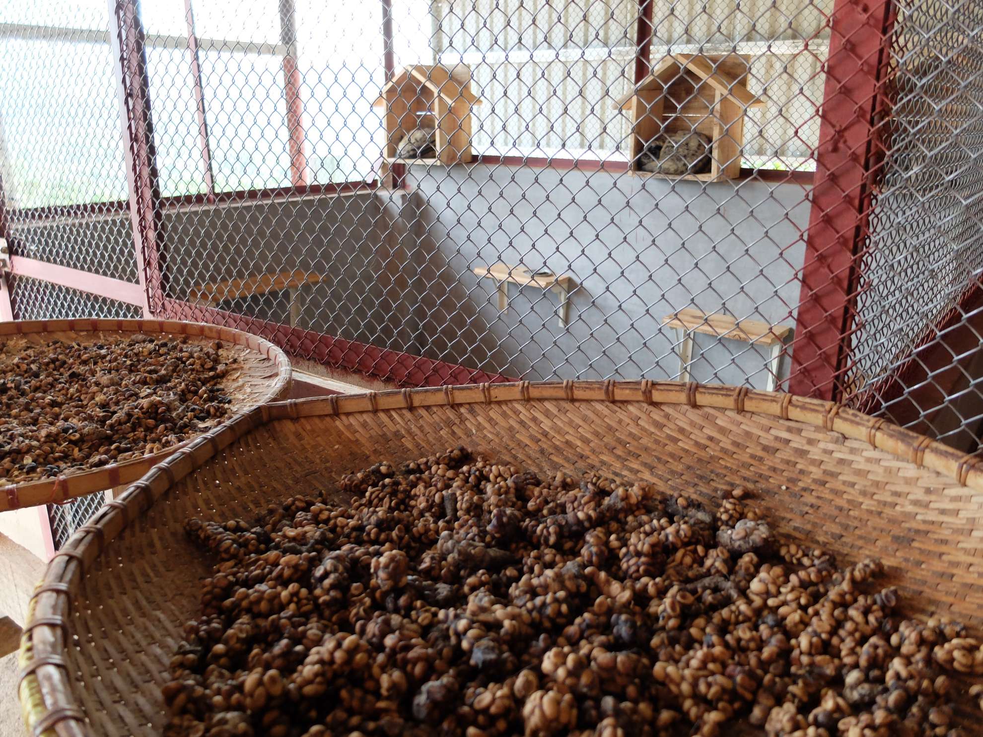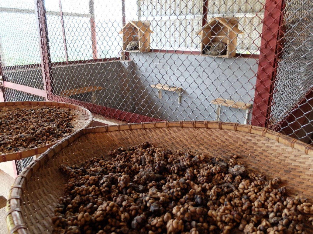 Weiter gings zu einer Seidenspinnerei und dann zu einer Farm zur Herstellung des berühmt-berüchtigten Wieselkaffees, der in etwa mit dem deutschen Katzenkaffee vergleichbar ist –Klaus hat ihn probiert: hmmm, lecker. Das linke Foto zeigt die Seidenraupen bzw. Schmetterlinge. Auf dem rechten Foto sieht man hinten die Behausung der Wiesel und vorne den ausgeschiedenen Kaffee.