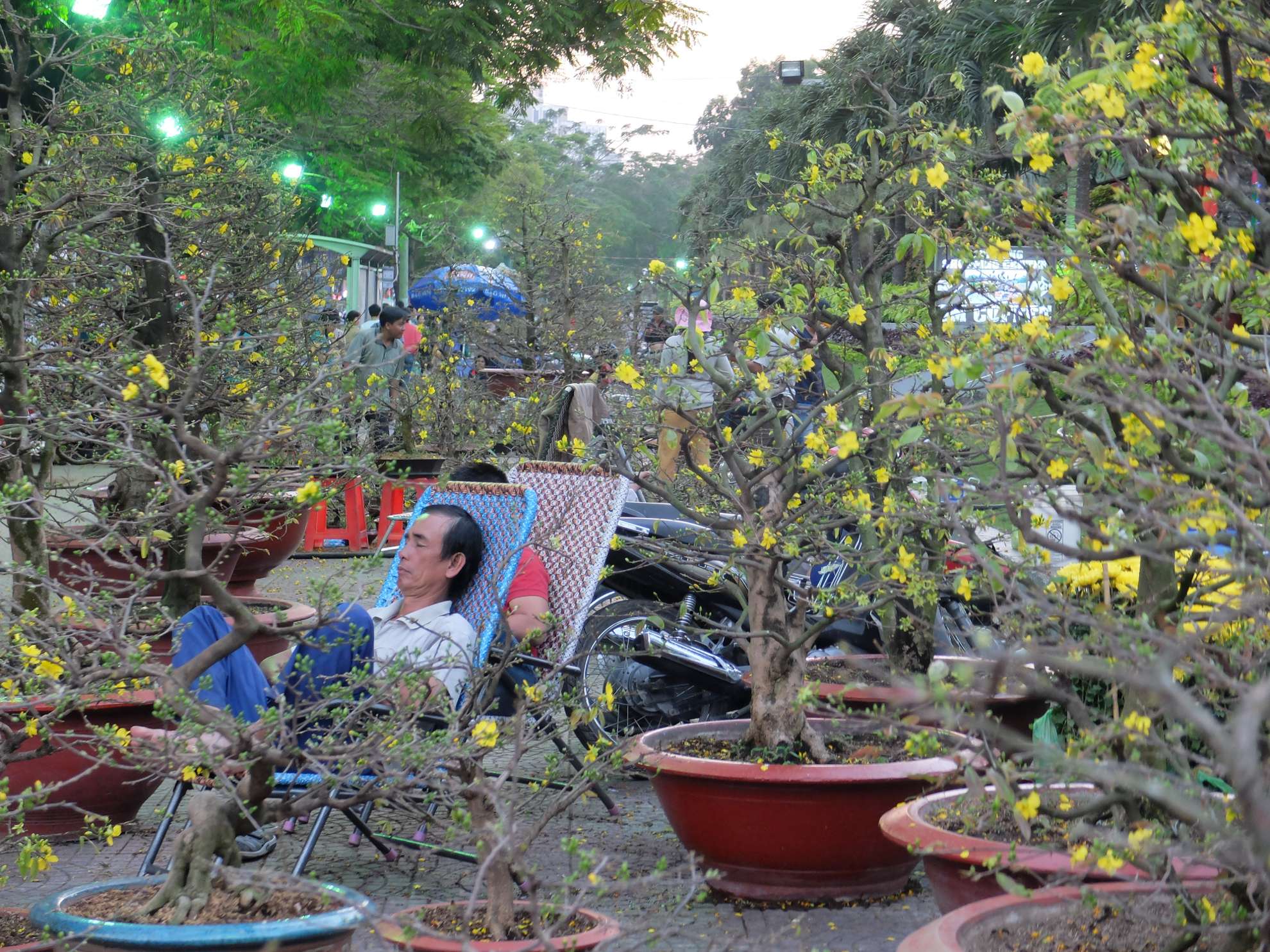 Saigon war während unseres Besuchs aufrund des anstehenden Ted-Festes (Neujahr) in eine betriebsame Aufregung versetzt, um dann plötzlich zum Stillstand zu kommen. Schon Wochen vorher reisten Ströme von Menschen von Süd nach Nord und umgekehrt, Blumen wurden gekauft und Unmengen an Lebensmitteln. Denn das Ted-Fest ist für die Vietnamesen der allerhöchste Feiertag, quasi Ostern und Weihnachten zusammen – fast alle Geschäfte haben dann geschlossen und die ganze Familie trifft sich. Wir schauten dem Treiben gerne zu und warteten gespannt auf den Tag X – und tatsächlich, alles kam zur Ruhe, als hätte sich eine weiße Schneedecke über die Stadt gelegt. Frohes Fest!