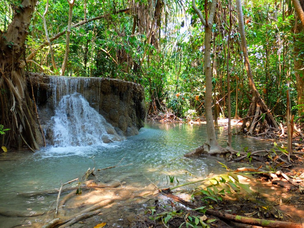 Das kleine Städtchen Kanchanaburi liegt am berühmten River Kwai in der Nähe des Eriwan Nationalparks, der für seine Wasserfall-Kaskaden bekannt ist. Hier wollten wir hin und nahmen wir den lokalen Bus. Denn allein der Besuch des Bahnhofs ist immer wieder ein tolles Erlebnis. Hat man die erste Armee von Neppern und Schleppern mit ihren überteuerten bis ungültigen Tickets erstmal abgewimmelt, eröffnet sich einem meist ein toller Blick hinein in eine Gesellschaft voller hilfsbereiter und neugieriger Menschen. Aber weiter: Im Dschungel angekommen wanderten wir die Pools entlang bis fast ganz nach oben und ließen uns zur Belohnung in dem eiskaltes Wasser von kleinen und großen Putzerfischen die Hornhaut von den Füssen knabbern. Mir (Klaus) war es ein wenig zu kalt und ich nutzte die Pools nur zur Fußkühlung, während Carmen ihre Bahnen schwamm.