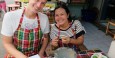 In Kanchanburi entdeckten wir ein hervorragendes kleines vegetarisch/veganes Straßenrestaurant, dass uns so gut gefiel, das wir einen Kochkurs machten. Wir durften uns sechs Gerichte aussuchen, die wir dann am nächsten Tag mit der liebenswürdigen Besitzerin und Köchin On gemeinsam zubereiteten.