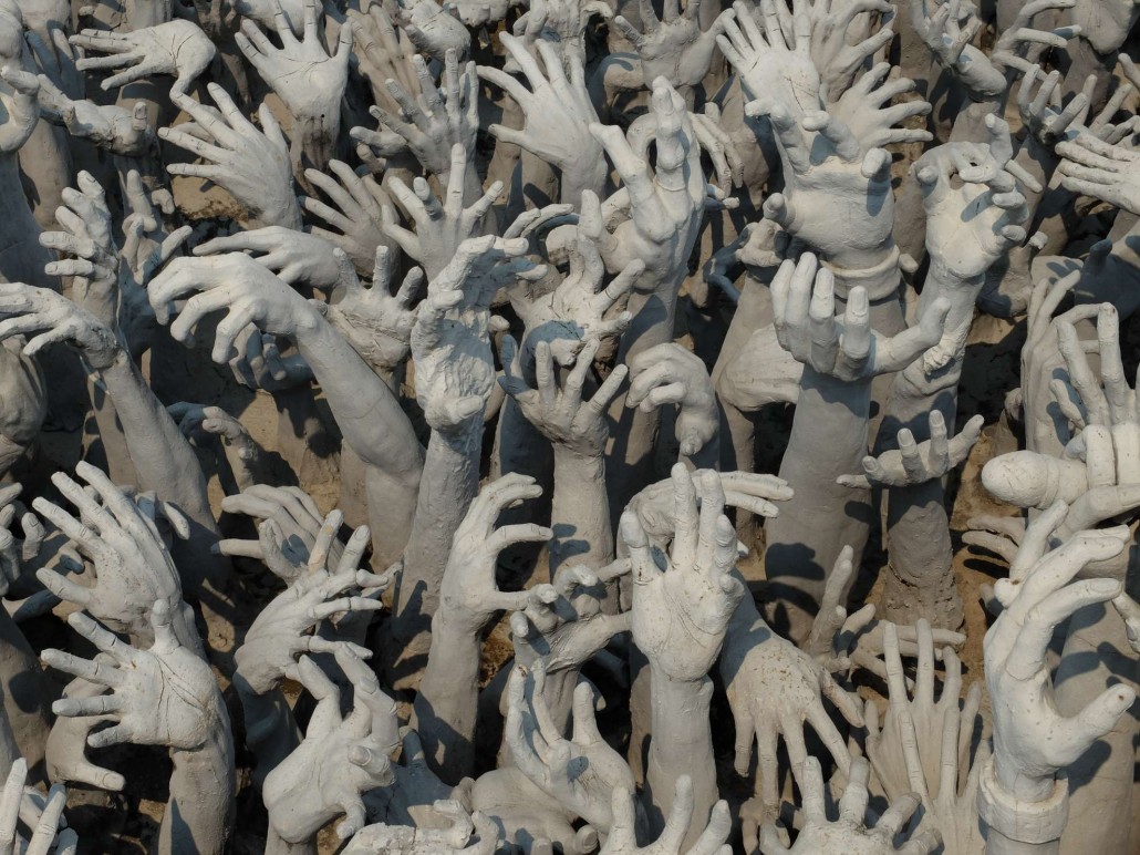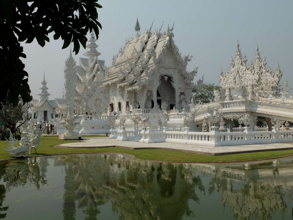 Dann stand unsere Weiterreise nach Loas an. Auf dem Weg zur laotischen Grenzbrücke, denn Thailand wird durch den Mekong von Laos getrennt, machten wir einen kurzen Zwischenstop an einem weißen Tempel, der wenig mit einer existierenden Religion und mehr mit den Touristen auf dem Weg nach Laos zu tun hat. Trotz Disneylandcharakter ein bezaubernder Anblick.