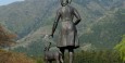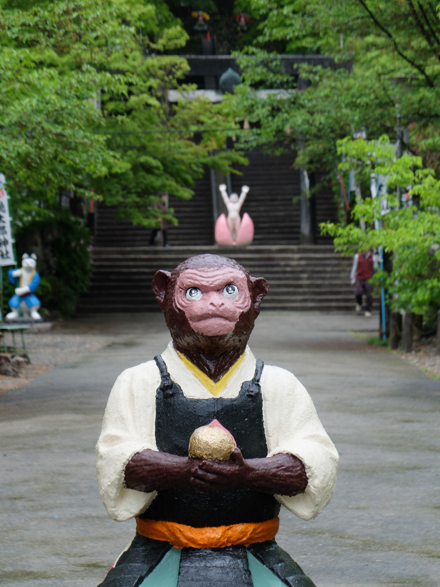 Wir ließen die Alpen und den Schnee hinter uns und fuhren durch die multicoloren und reizend beblätterten Wälder Gifus zum japanische Pendant des Rheins, dem Kiso-River. Gerne wären wir in der Gifu-Region zum wandern geblieben, stattdessen schlugen wir am Ufer im Regen unser Zelt auf, kochten und aßen im Regen ein spärliches Mahl und besuchten im Regen einen Schrein, an dem mit eigenartigen Plastikpuppen ein Märchen erzählt wurde, dass sich uns nicht erschloss.