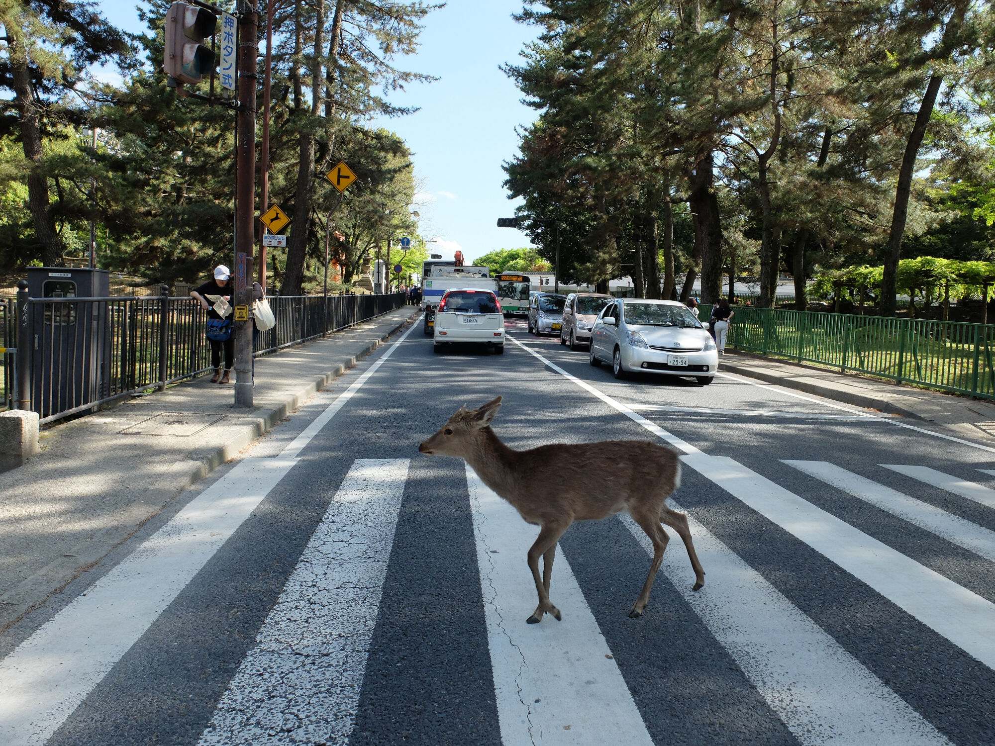 Wir besuchten noch die Inuyama Burg und flüchteten schließlich nach Nara um uns zu trocknen und in ein paar weichen, weißen Federn zu erholen. Nara ist ein typisches Ziel für jeden Japanreisenden. Es gibt hier wunderschöne Parks, Viertel, Tempel und eine riesige Buddah Statue. Das surreale: überall laufen Rehe rum, einfach so. Die heiligen Vierbeiner laufen über die Straßen, Zebrastreifen, gehen in Geschäfte, liegen im Park, stehen im Wald. Eine verrückte Atmosphäre. Nach unseren langen Spaziergängen ging es in der Dunkelheit immer vorbei an sehr, sehr vielen leuchtenden Augen.