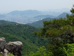 Auf dem Berg Geumjeongsan gibt es eine alte Festungsanlage und da Sonntag war, nutzen wir zusammen mit sehr vielen anderen den freien Tag um dort zu wandern. Mit der Seilbahn fuhren wir zur Bergspitze und genossen den Ausblick auf die Stadt und die Umgebung. Auf unserer Wanderung entlang alter Festungsspuren, lernten wir einige Unterschiede zwischen europäischen und koreanischen Wanderkulturen kennen. Zum Beispiel trägt fast jeder Wanderer ein kleines Radio mit sich, aus dem beständig koreanische Schlagermusik ertönt/erklingt. Auch die Wahl des Picknickortes war oft bemerkenswert. Sie bezwingen fröhlich das Unterholz, so könnte man es vielleicht beschreiben. Gerne hätten wir noch den Strand der Stadt gesehen, doch wir gingen davon aus, dass wir am Ende unserer Koreareise noch einmal wiederkommen würden – um mit dem Schiff nach Shanghai überzusetzen. Wir kauften unser Busticket für die Weiterreise, ein Eis aus der flüssigen Stickstoffkühlung und ließen unseren letzten Tag in Busan inspiriert und auch etwas verwirrt zu Ende gehen.