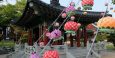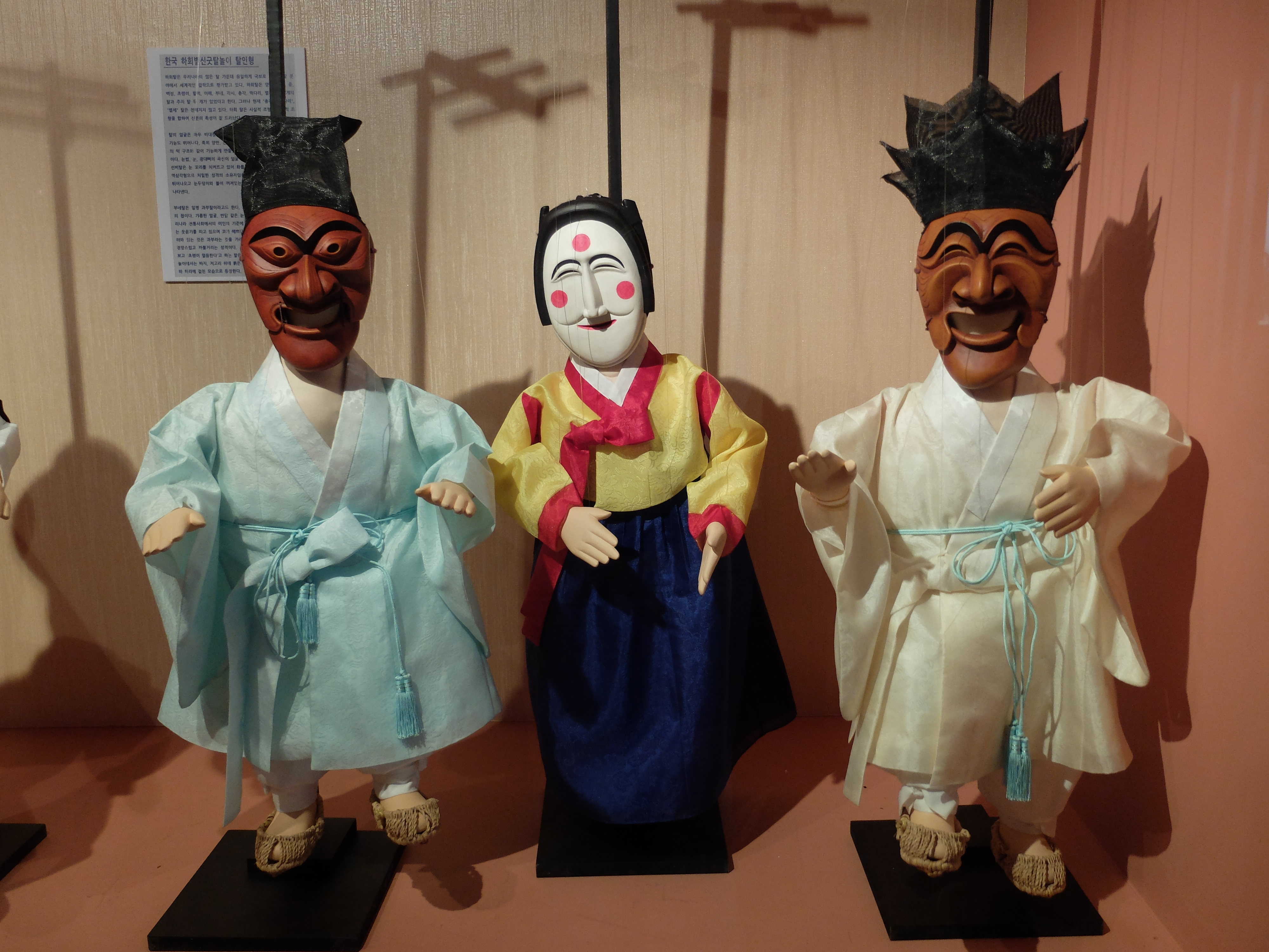 Mit dem Bus ging es weiter nach Andong. Unser exklusives Abenteuer begann schon bei unserer Ankunft im Busbahnhof. Alle anwesenden Koreaner war erstaunt, als sie uns und unser Gepäck sahen und so folgten uns 30 Augenpaare bei unseren unbeholfenen Versuchen, einen Anschlussbus in die Stadt zu ermitteln. Andong ist eine Stadt, die in Südkorea für ihre Maskentradition bekannt ist – in der Nähe liegt das Museumsdorf Hahoe. Die ländliche Lage des Dorfes an einem Fluss mit einer Klippe auf der anderen Seite ist idyllisch, gerade morgens. Wir gingen dort an einem herrlichen Tag in der Sonne spazieren, saßen gerne auf den Bänken am Wasser, hörten, dass man nichts hört, liefen im Dorf herum und waren zunächst fast die einzigen Gäste. Mit fortschreitender Zeit und dementsprechender Zunahme der Besucher und auch der Alkoholisierung, wurde es lauter und lustiger. Laut und lustig soll es auch bei den traditionellen Maskentänzen zugehen, die als sehenswert gelten. Jedoch waren wir irgendwie nicht in der richtigen Stimmung. So ist das manchmal. Auf dem Heimweg sahen wir ein Fernsehteam, wie sie sich an der kleinen Fähre zu schaffen machte. Sie wollten wohl die Rettungsmittel filmreif überprüfen. Das Fährunglück vor Incheon, bei dem von den fast 500 Menschen – davon 300 Schüler – nur 174 überlebten, war gerade 2 Wochen her.