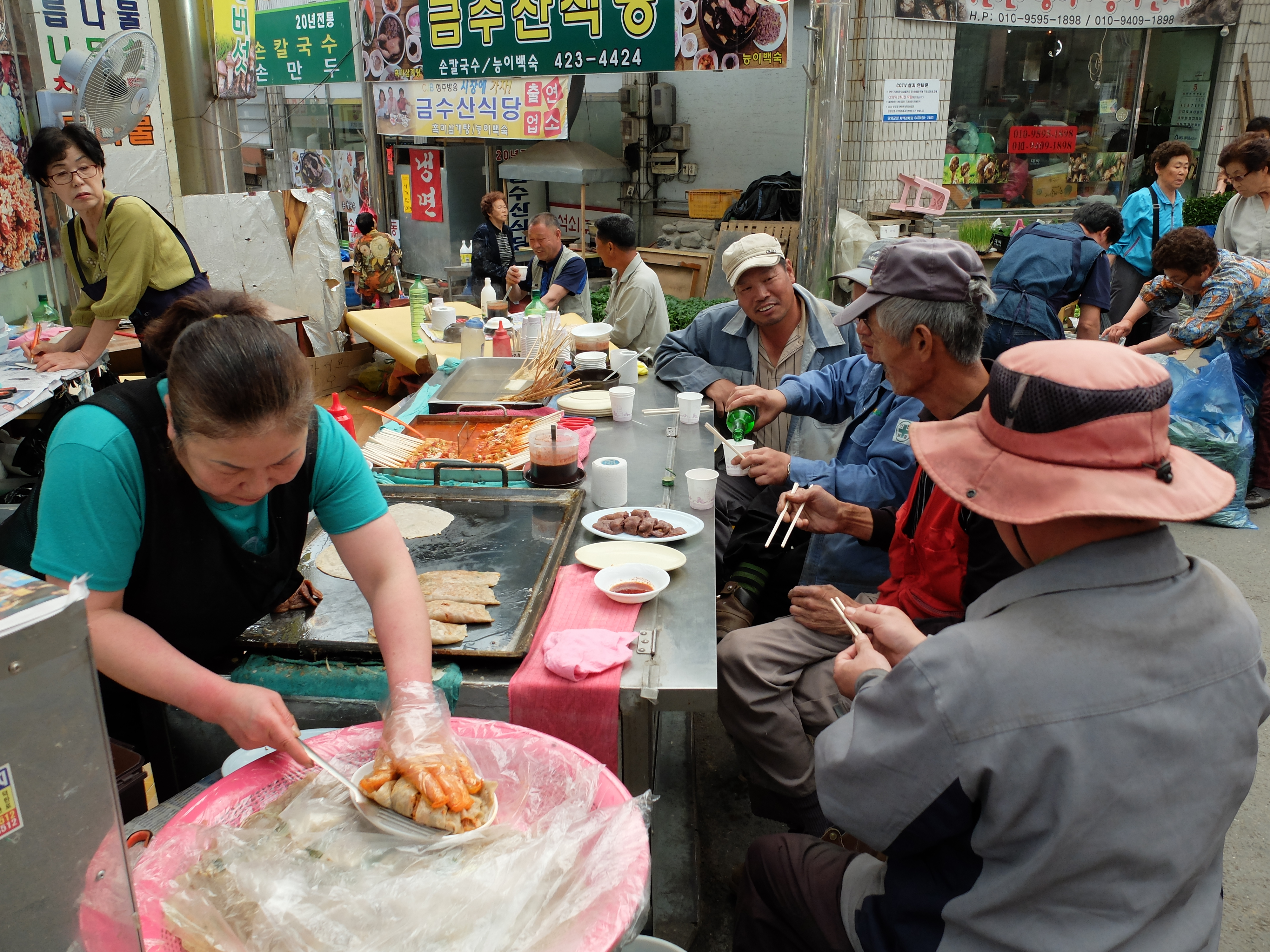 Doch zunächst: neues Land, neue Telefonkarte. Dachten wir jedenfalls. Erster Tag … Aber irgendwie wollte das nicht klappen – einen auf Spezialfälle wie uns eingestellten Shop für Telefonkarten hatten wir zwar gefunden, aber er war geschlossen. Zwei Versuche in „normalen“ Telefonläden brachten zwar nette Begegnungen, aber keine Telefonkarte. Die Verständigung war nicht leicht – fremde Sprache trifft auf komplizierte Materie, wäre vielleicht die Kurzfassung. Bis zum Schluss unserer einmonatigen Koreareise hatten wir kein eigenes Internet, was aber nicht nur an der sperrigen Beschaffung lag. Wir verloren schnell das Interesse. Mit Auto und Zelt, wie in Japan, war eigenes Internet wichtig, in Südkorea ging es für uns auch ohne.